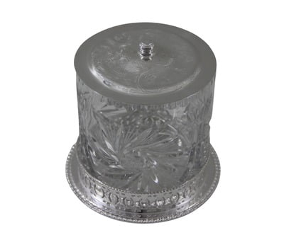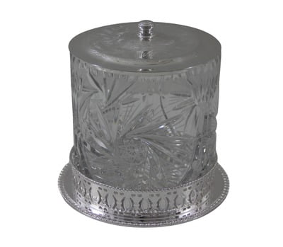 Cameo Design Cookie Jar Crystal/English Silver Plate. SKU #: C3547.