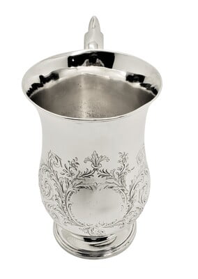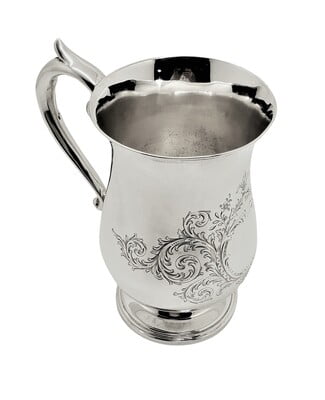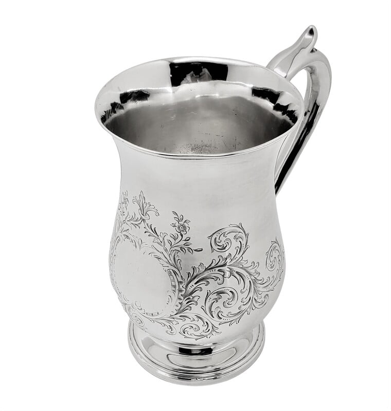 2 Pint Engraved Bellied Mug English Silver Plate c.1850