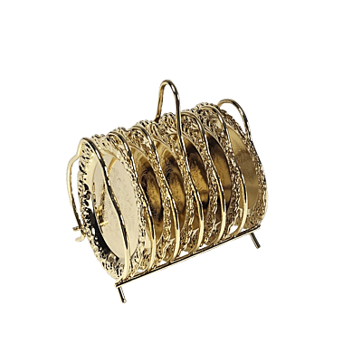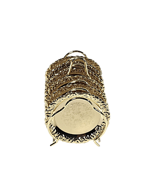 Queen Anne 6 Pce Coaster Set 4 1/2" x 3 3/8" x 5" (Coaster Diam 3 3/4) (Gold Finish). SKU #: Q4/5896/2.