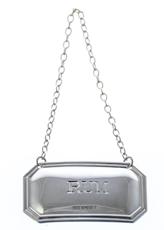 RUM Cut Corner Hallmarked Silver Decanter Label..