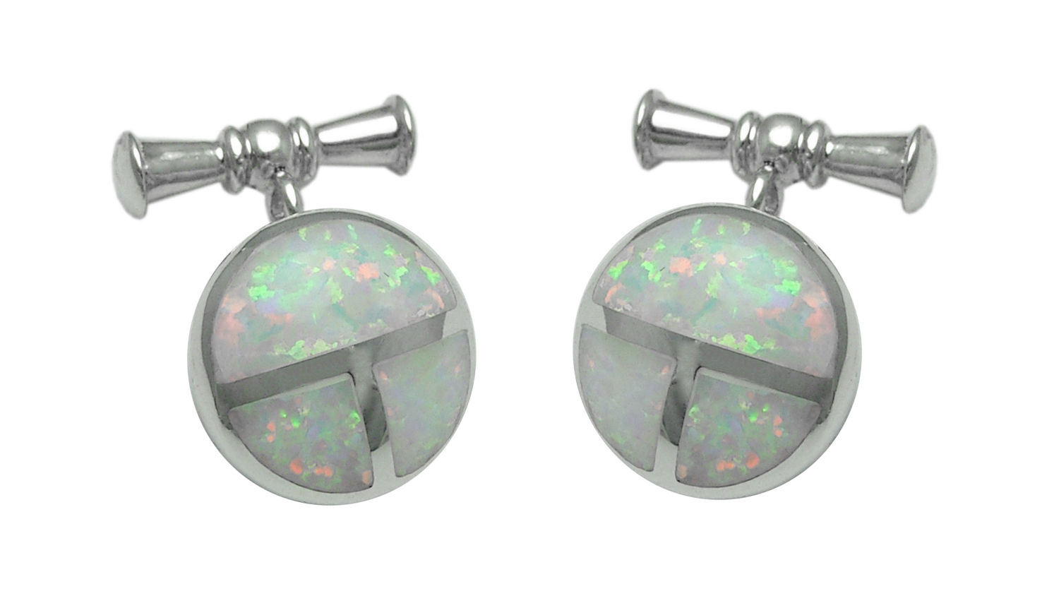 SILVER CUFFLINKS Round Shape with Crushed Opals Sterling Silver Chain Back
