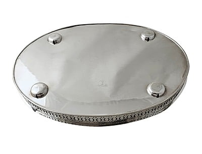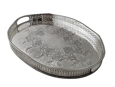 Oval Engraved 16" x 11.75" Gallery Tray With Inset Handles English Silver Plate c.1950. SKU #: ANT3003.
