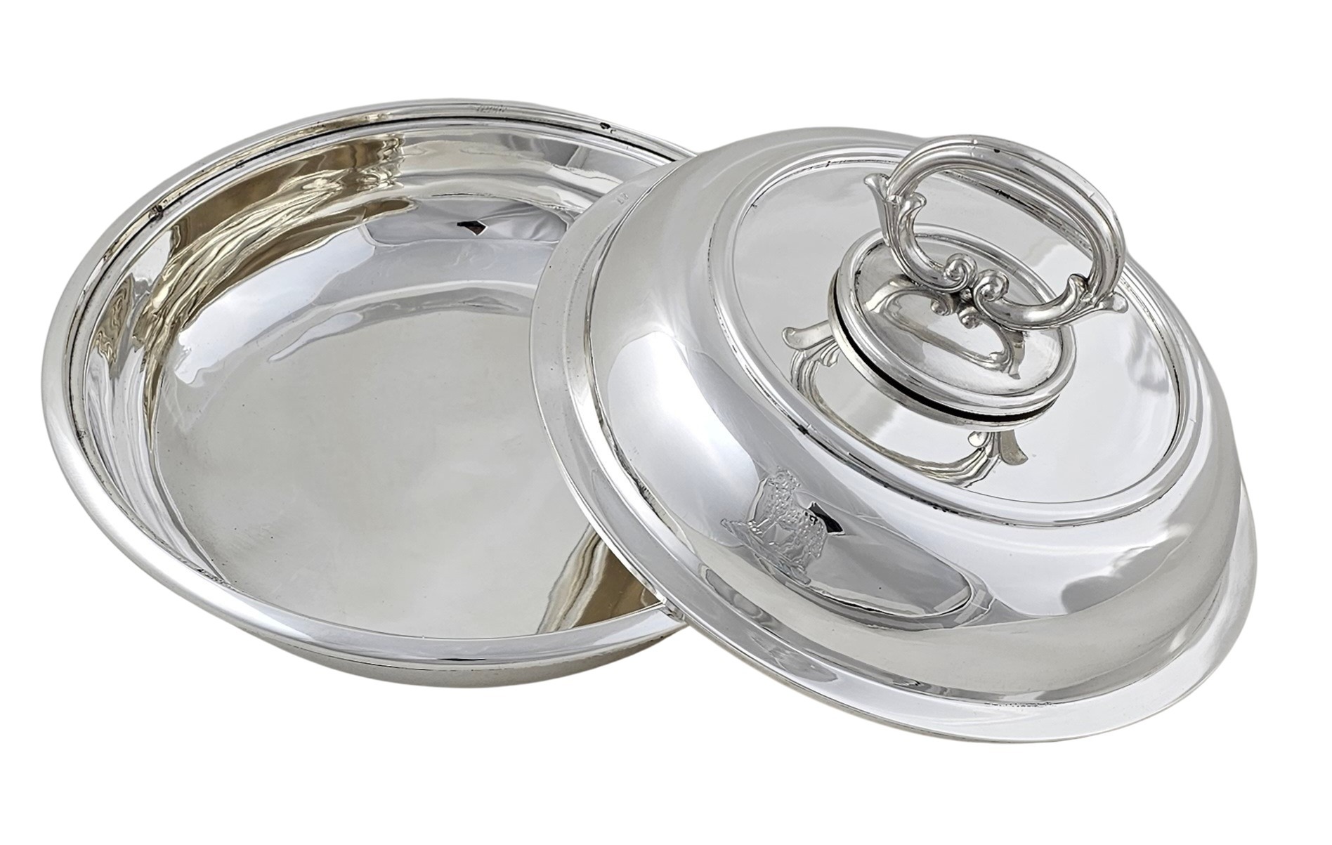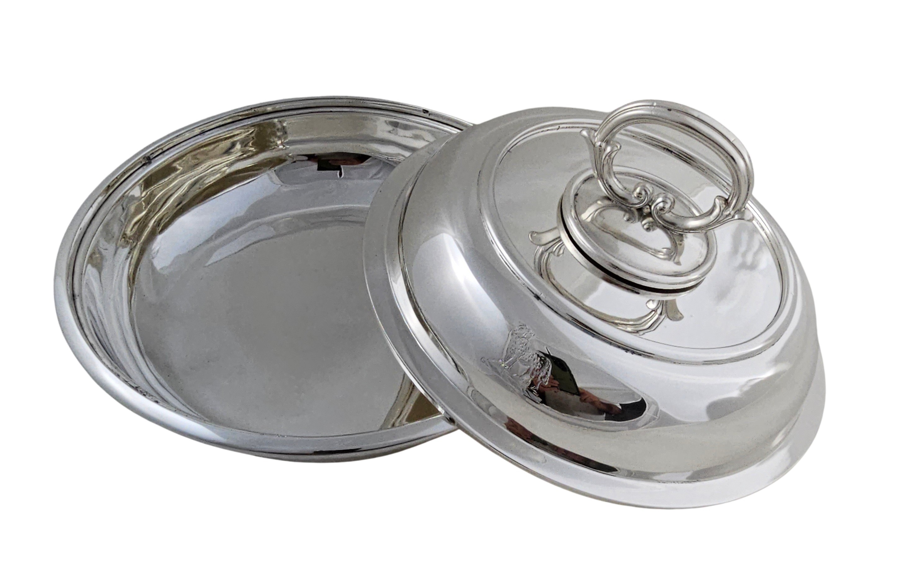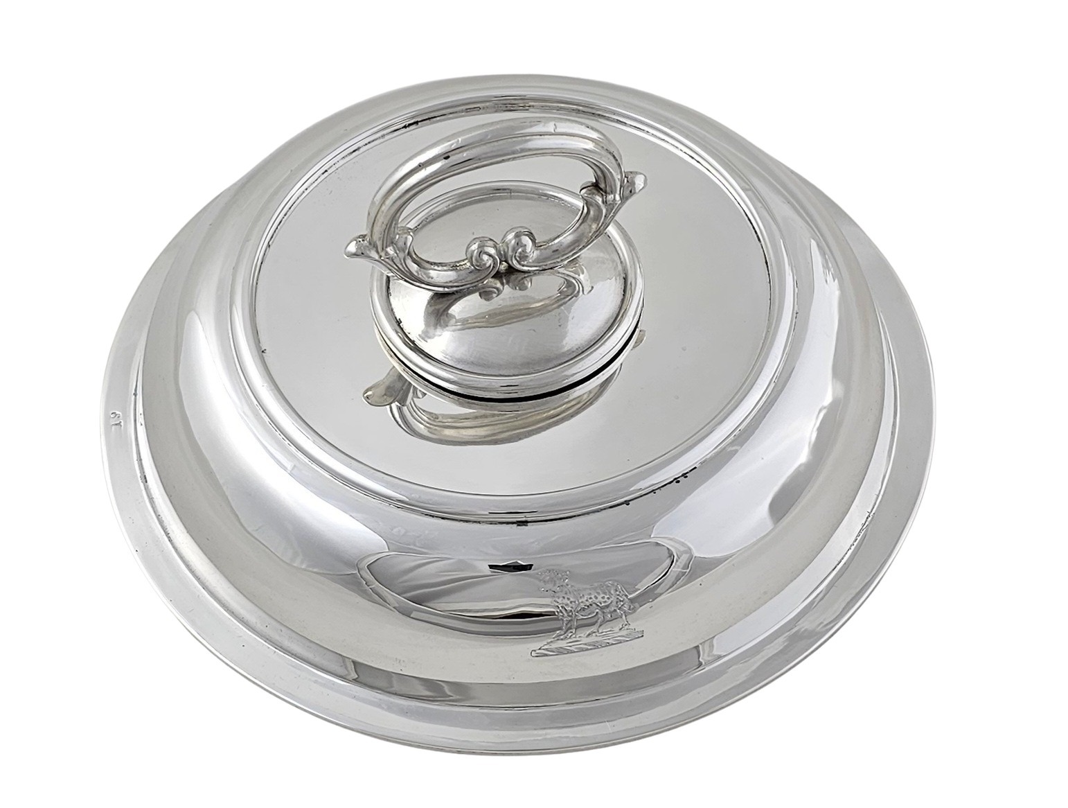 Entree Dish Crested Round Entree Dish on Warmer With Candle English Silver Plate c.1860. SKU #: ANT2740.