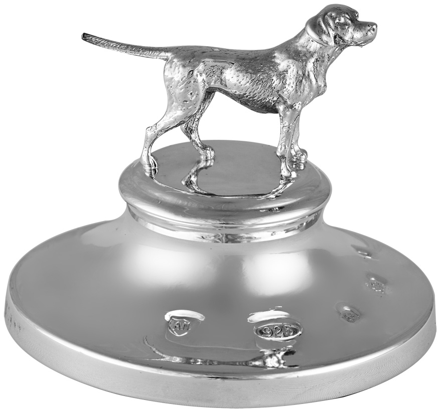This sterling silver hound paperweight is perfect for keeping your papers neat and tidy and would look simply wonderful on any desk. Designed and made in Britain, this paperweight is a plain rounded style with beautiful hound figurine. This Hound Paperweight is of high quality silverware, designed and made in Britain that can be treasured forever.
