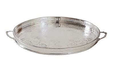 Oval Gallery Tray 19" x 12" x 1.5"h English Silver Plate c.1950(2 Left). SKU #: ANT2204.
