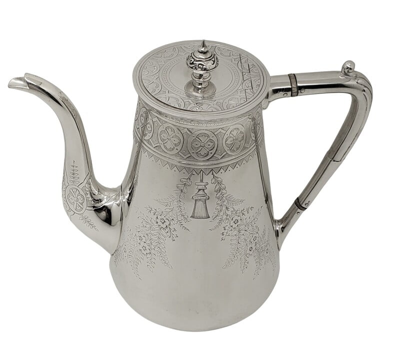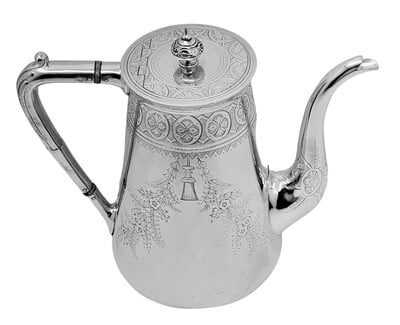 Coffee Engraved Coffee Pot English Silver Plate c.1860