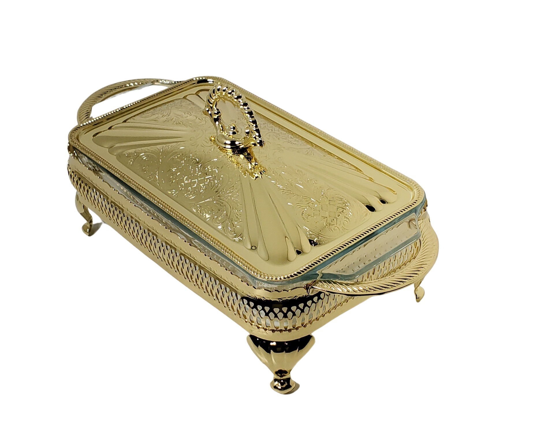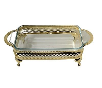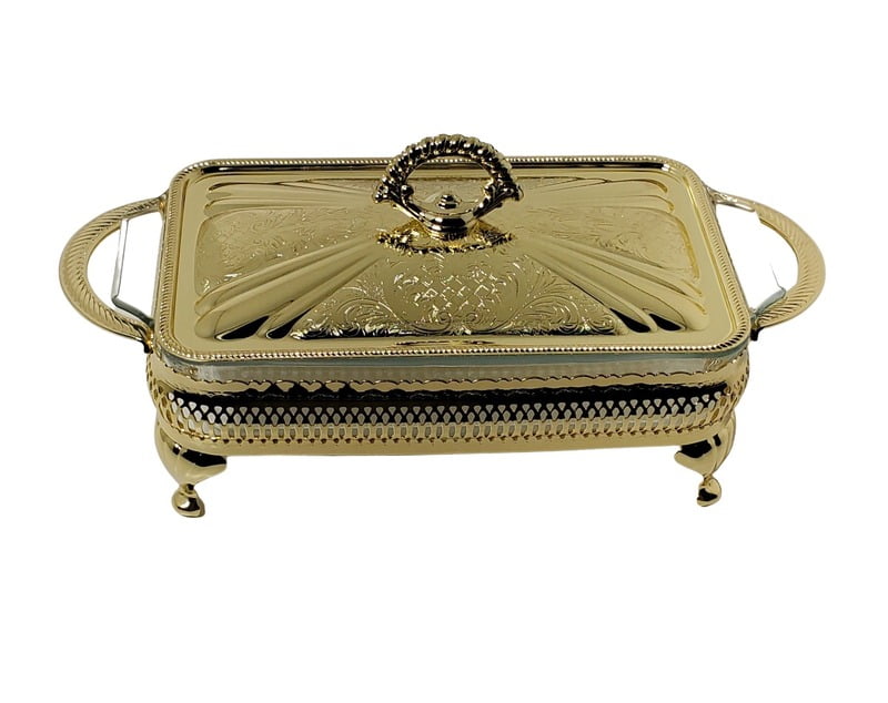 | Single Casserole/Lid 6"h x 6"w x 12 1/2"l English Silver Plate Tarnish Resistant (Gold Finish) |