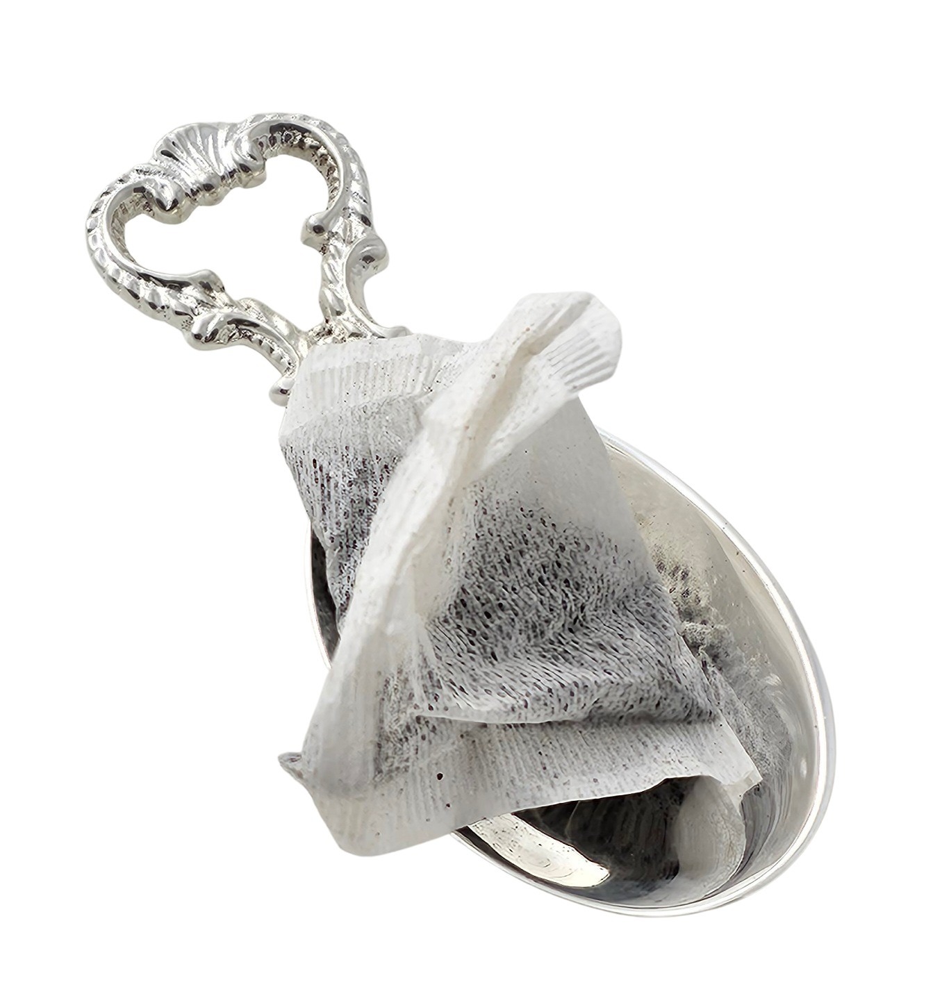 Elevate your tea time experience with our elegant Tea Bag Holder Spoon. Crafted from high-quality silver plate, this spoon features an intricate and elaborate handle design, adding a touch of sophistication to your collection. The peg base ensures stability and convenience, making it a perfect accessory for any tea enthusiast.