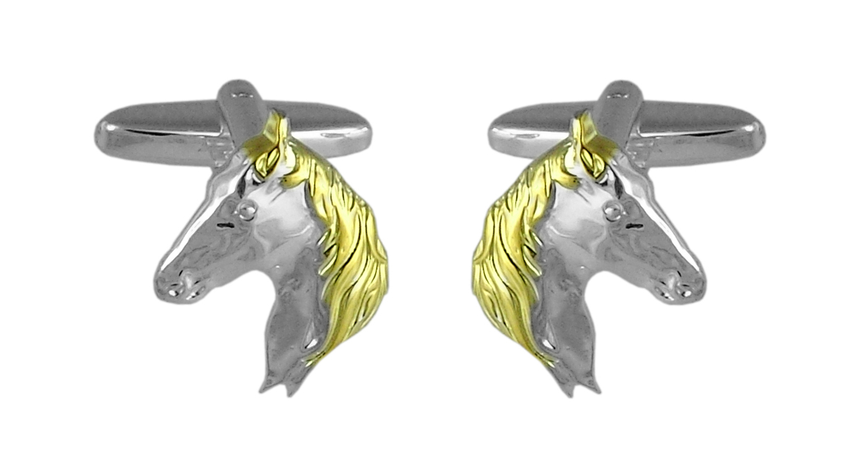 Cufflink Horse Head Swivel with Gold Plated Mane Design English Sterling Silver. SKU #: CU492.