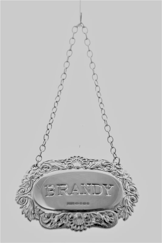 Decanter Label-BRANDY, Fancy Shell & Scroll, Sterling. SKU #: C503HMSBRANDY.