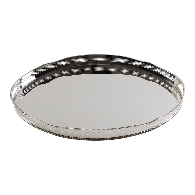 Oval 24" Gallery Tray Inset Handles English Silver Plate c.1960. SKU #: A834.