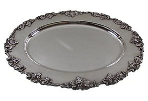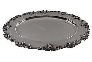 Beautiful platter with grapevine rim. Made in America, silver plate, circa 1895.21"L x 16.25"W x 1.5"H