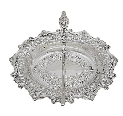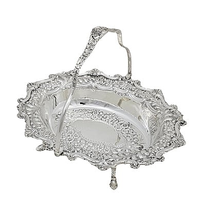 Basket Oval Footed Embossed English Silver Plate c.1875. SKU #: ANT2627.