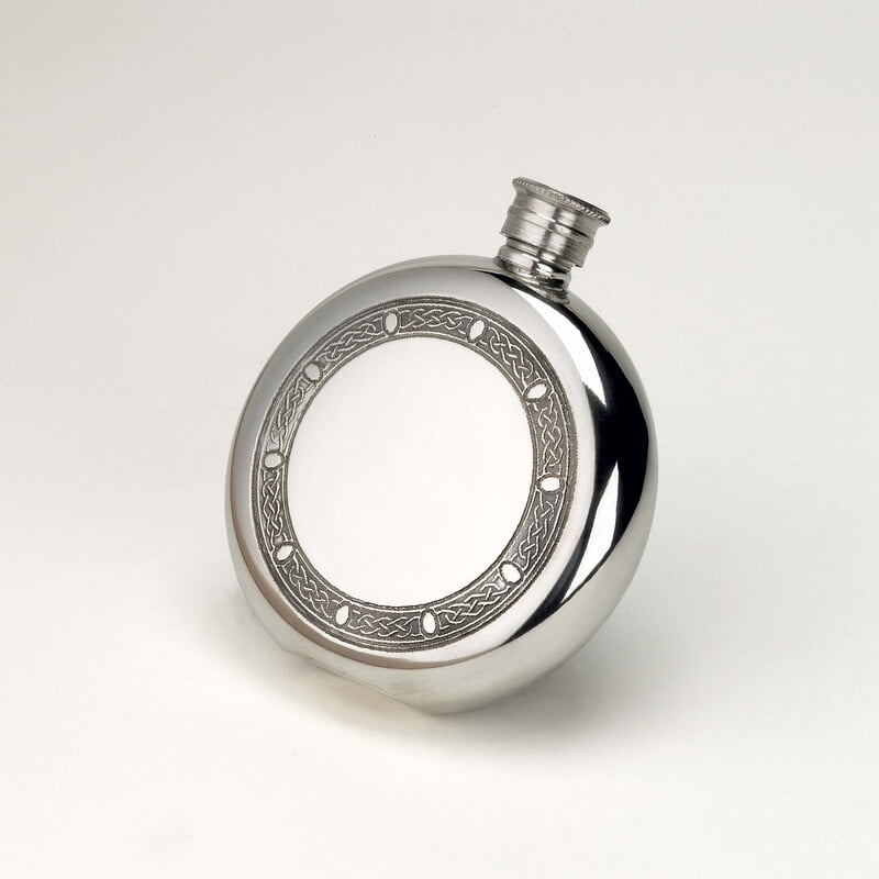 Celtic Flask Round Pewter 6 oz.. SKU #: P789FL.