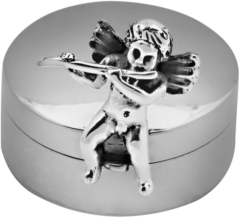Featuring a sterling silver flute playing cherub sitting on the rim of the lid, this pill box takes its inspiration from the Art Nouveau period. Its classic rounded shape makes it ideal for storing or carrying pills when out and about, or for treasured small items. Usually associated with innocence and purity, why not give this cherub pill box as a birth, Christening or Baptism gift.