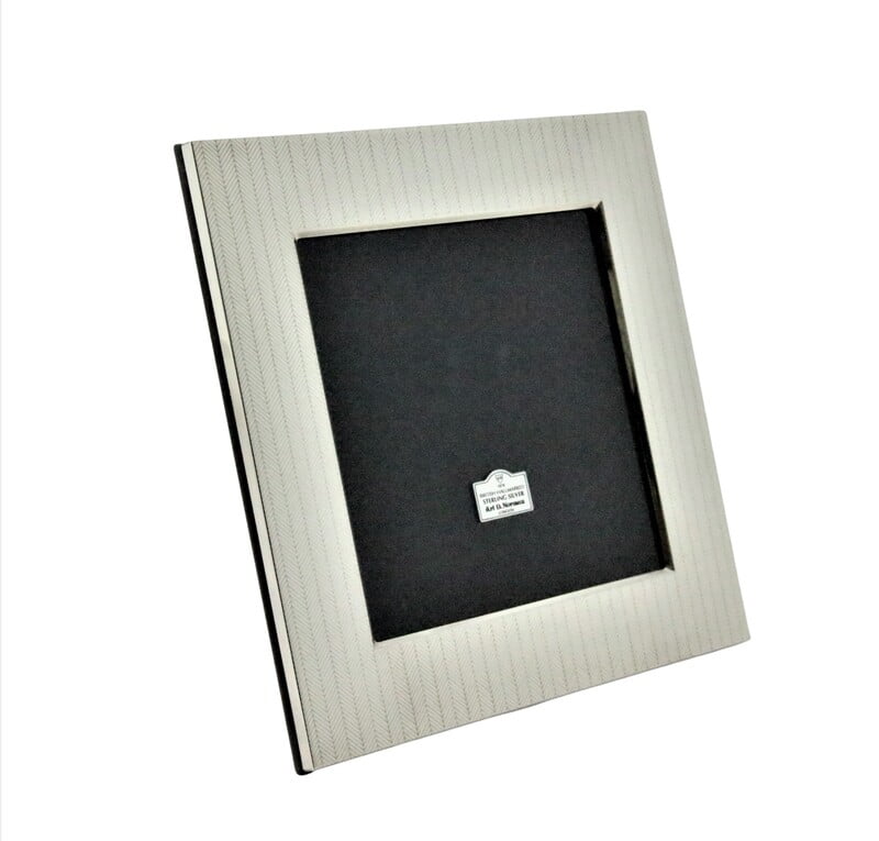 English Sterling/Wood Herringbone Design Photo Frame-5" x 5"