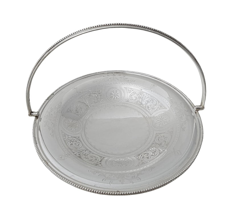 Basket, Round ,Engraved English Silver Plate c.1875.