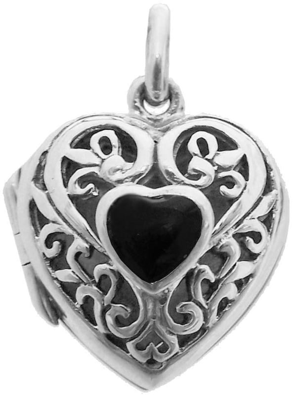 Heart Pendant Locket with Small Black Onyx Heart in Middle Opens .75" W X .75 L..English Sterli...