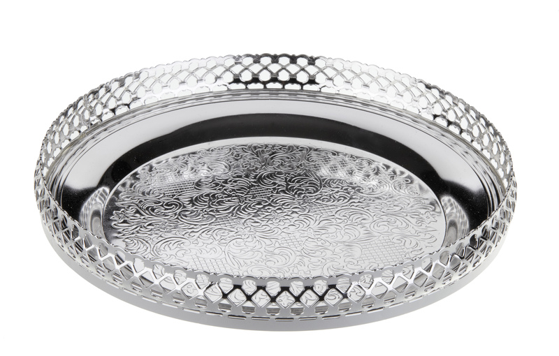 Small Round Tray 7 1/4" dia x 1 5/8"h English Silver Plate (Tarnish Resistant)