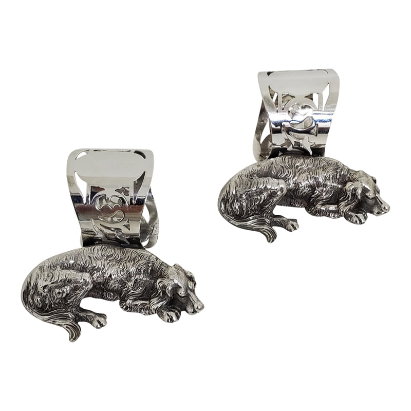 Vintage Pair Figural English Napkin Ring c.1900 IRISH SETTER