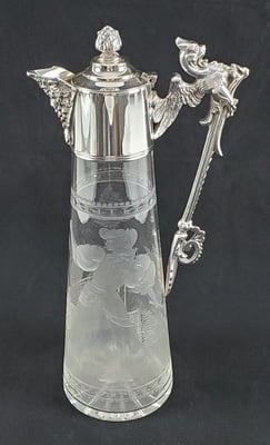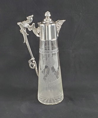 Silver Plate/Etched Glass Tennis Claret Jug