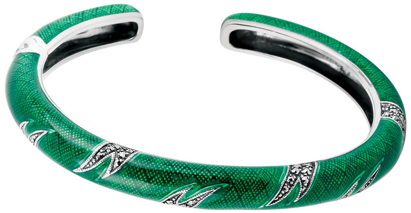 Bangle Green Enamel & Marcasite Set Hinged Bangle English Sterling Silver 2.75". SKU #: BE411.