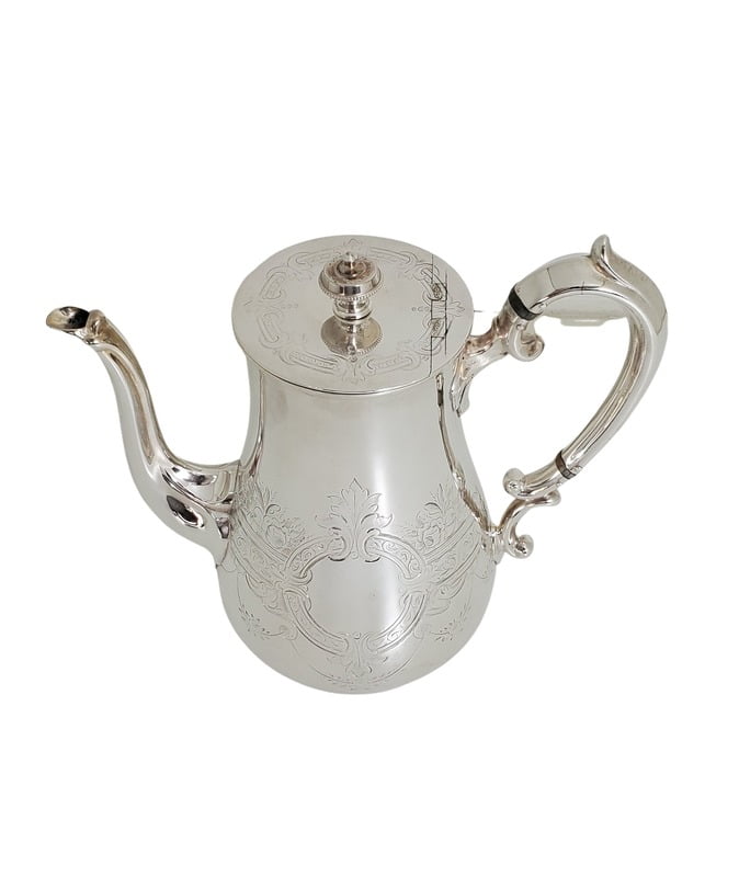Coffee Pot Engraved English Silver Plate c.1860. SKU #: A617.