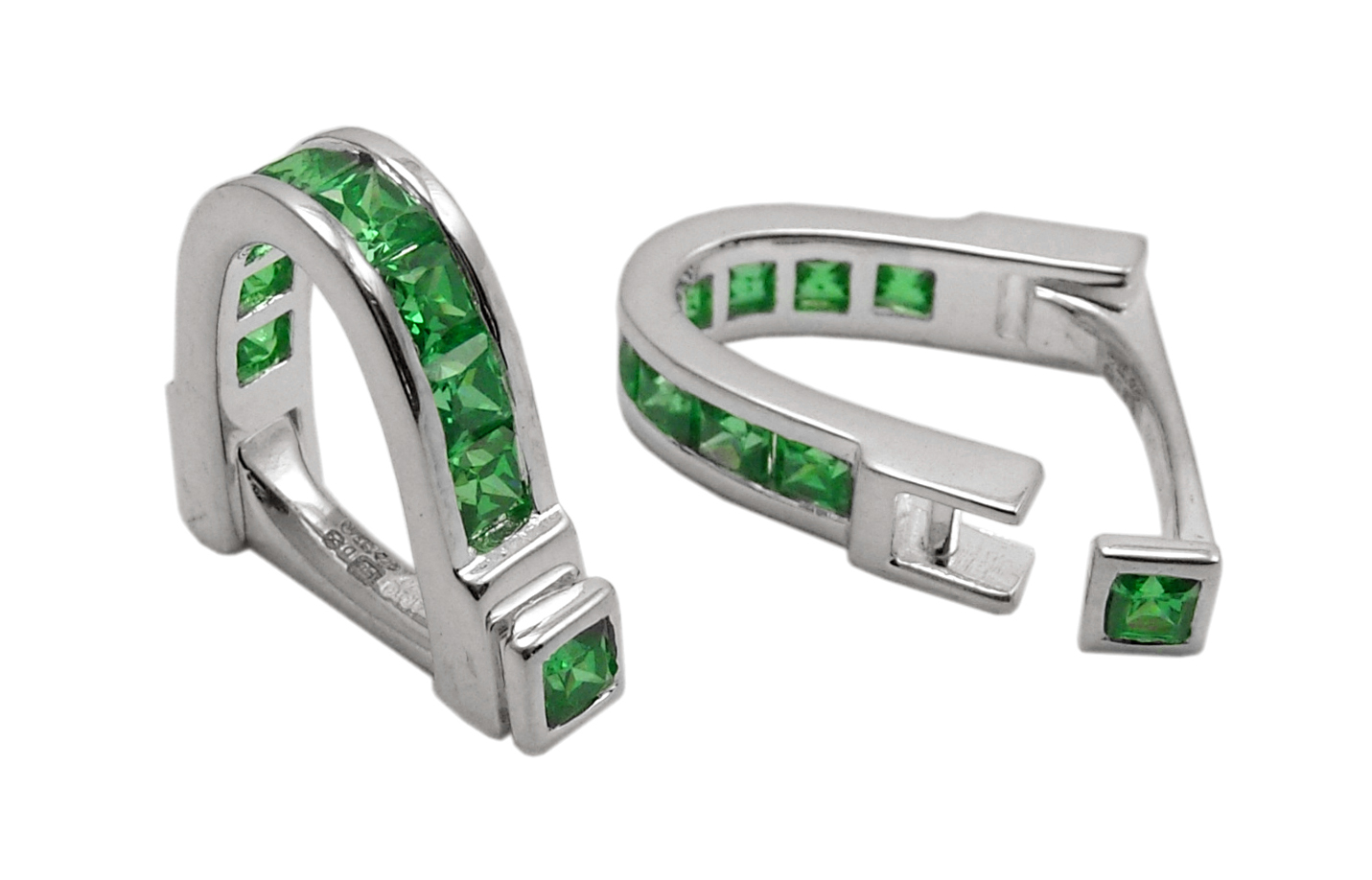 SILVER CUFFLINKS-Green Stones Sterling Silver. SKU #: CU454.