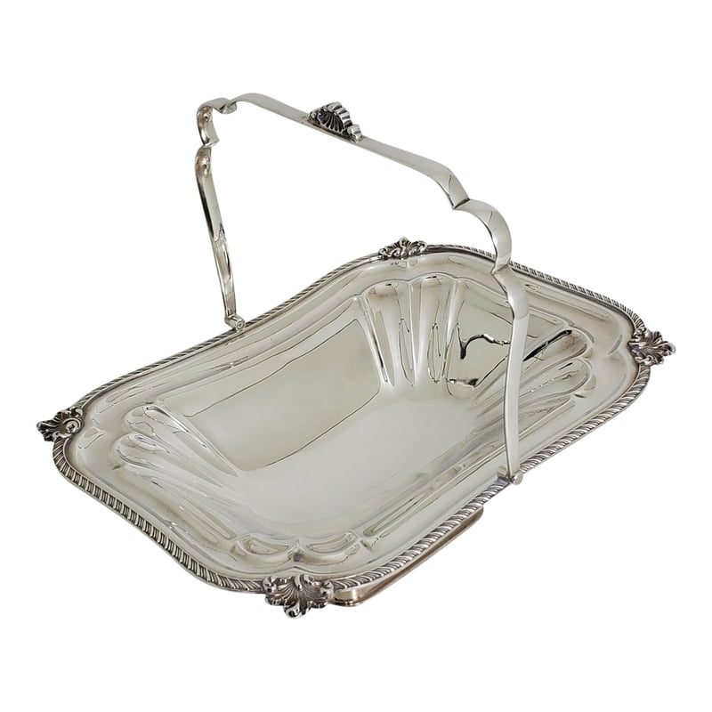 Basket Rectangular Shell & Gadroon English Silver Plate c.1885