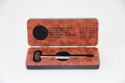 Thermometer in Wood Box 6.5" x 2.5". SKU #: KMKW1.