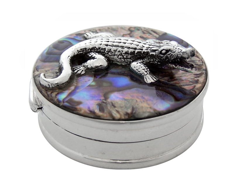 SILVER PILLBOX WITH ALLIGATOR. SKU #: PB574.