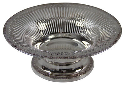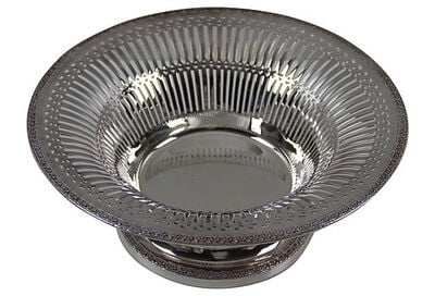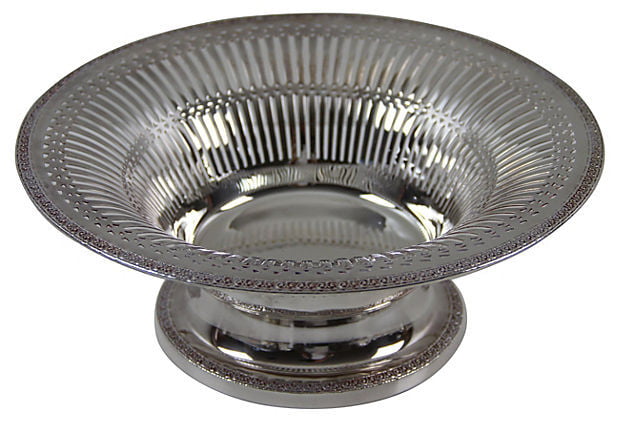 Silver plate round dish, pierced with engraved border. Made in Portugal, circa 1970