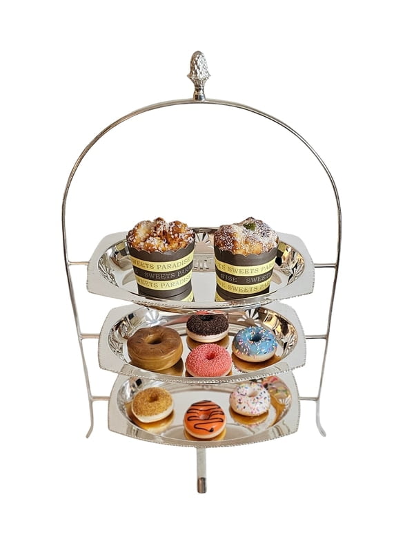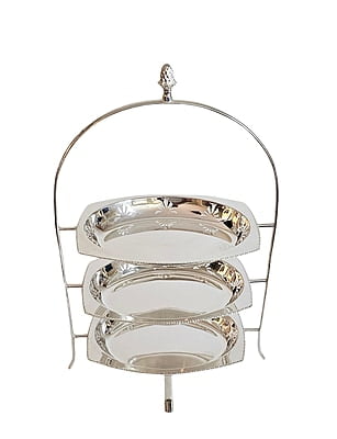 Cake Stand, with 3 Oval Plates, Silver Plate. SKU #: C838.