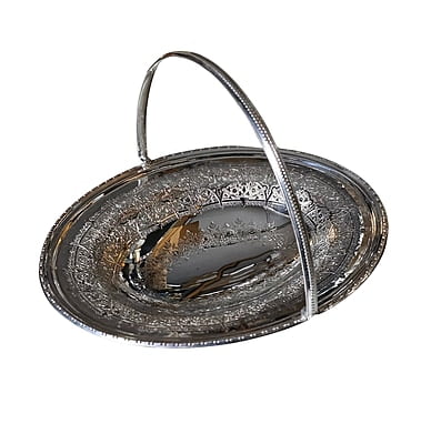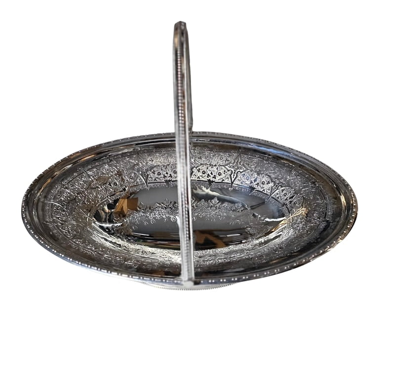 Basket Oval Engraved English Silver Plate c.1885.SKU:ANT4047