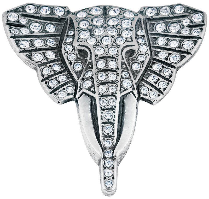 Brooch Elephant Head Design with Crystals Sterling Silver 1 5/*" x 1 1/2". SKU #: B309.