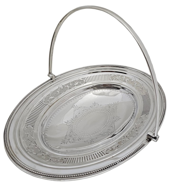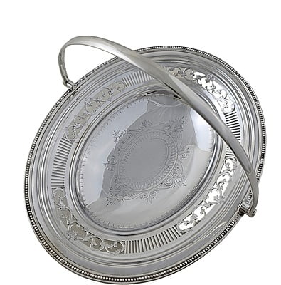 Basket Oval Engraved & Pierced English Silver Plate c.1875. SKU #: ANT2830.