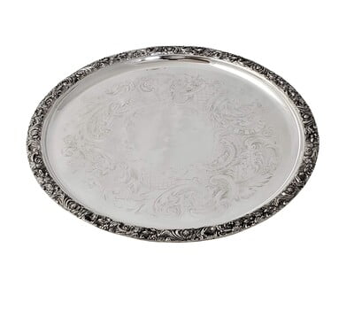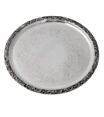 Round 13.5" Engraved Salver English Silver Plate c.1900