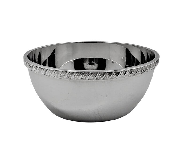 Heavy Bowl with Gadroon Border – English Silver Plate (c. 1940), 4" Diameter
