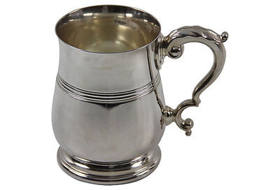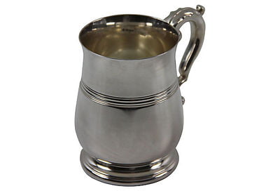 Pint sized mug with ribbed pattern. Made in England of silver plate circa 1880. Dimensions: 5 1/2"L x 3 3/4"W x 4 3/4"H.