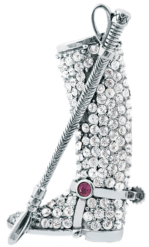 Brooch Crystal & Amethyst Set Riding Boot & Crop English Sterling Silver .75" x 1.5". SKU #: B624.