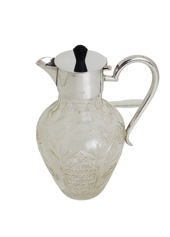 Claret Jug Plain Mount Hobnail Glass English Silver Plate c.1900