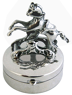Pillbox Moving Rocking Horse Round Hinged English Sterling 1.5" x 1.25". SKU #: PB591.