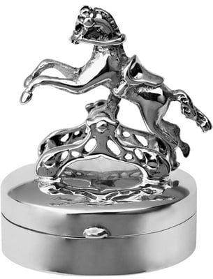 Ideal for a baby as a Christening gift, this hallmarked sterling silver pill box with moving rocking horse is a perfect collectible for those special occasions. Designed in London and made in England this rocking horse pill box is meticulously made to the maximum standard from sterling silver.