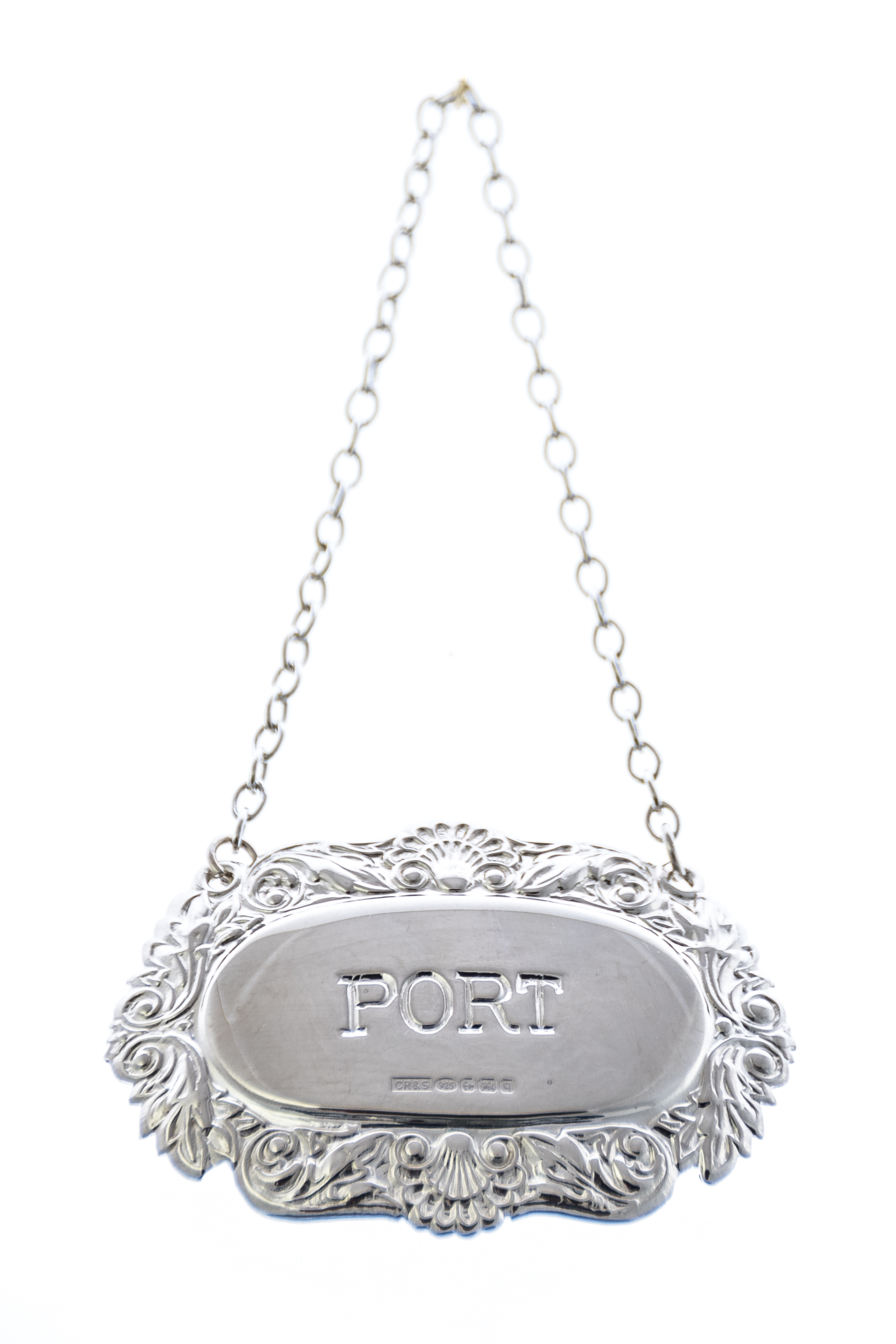 Decanter Label-PORT, Fancy Shell & Scroll, Sterling. SKU #: C503HMSPORT.