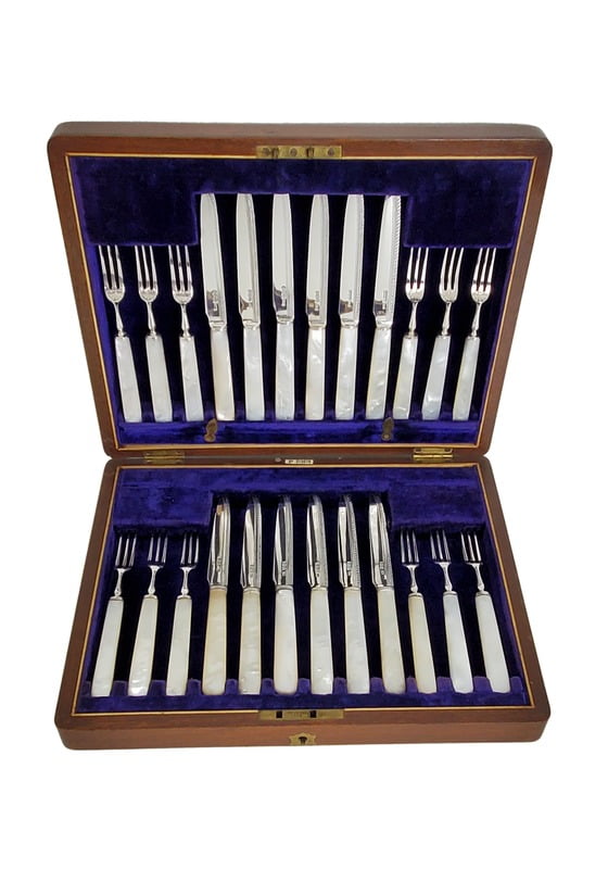 Set/12 Fruit Eaters Mother of Pearl/English Sterling Sheffield 1900. SKU #: A1477.