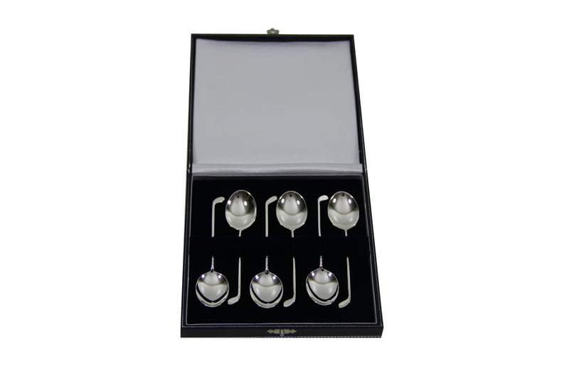 Coffee Spoons, SP, Golf Club (6) Cased, 3.75'