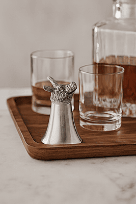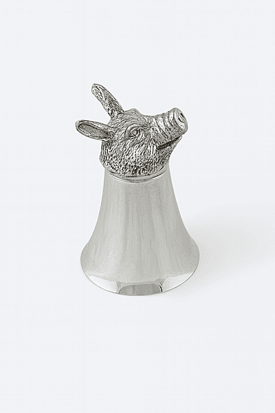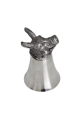 Pewter Pig Head Jigger – 3.25"H x 2.25" Base Crafted with heritage charm and sculptural precision, this pewter jigger features a finely detailed pig’s head atop a flared base. The textured snout, upright ears, and lifelike fur capture rustic elegance, while the polished pewter body offers a smooth, weighty feel in hand. Measuring 3.25 inches tall with a 2.25-inch base, it’s both a functional bar tool and a collectible conversation piece — ideal for gifting, display, or refined cocktail service
