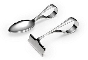 A timeless, unique and stylish baby’s cutlery set. This exquisite engravable Victorian style hallmarked sterling silver fork and spoon comes complete in a premium presentation box. Quality oozes from this delightful set that will make a meaningful gift to be treasured forever. The elegant loop enhances this baby’s first spoon and fork set, which can be engraved and personalized with a child’s name.