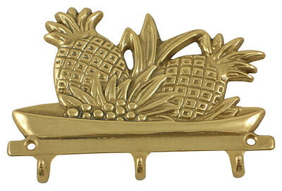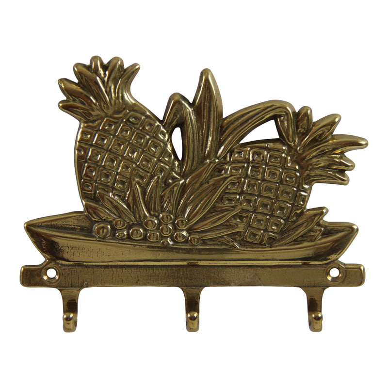 The pineapple, a centuries-old symbol of hospitality, is the motif for this Italian brass rack of three hooks.