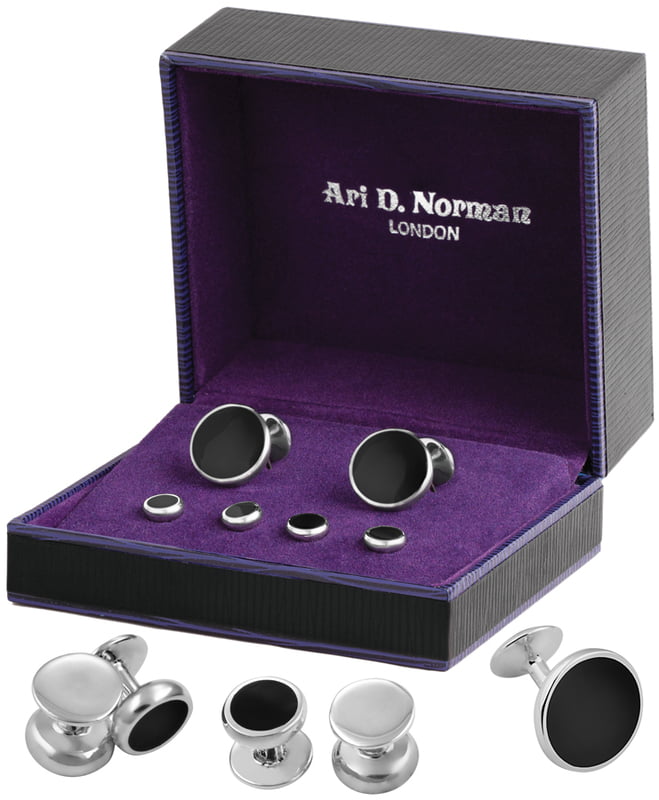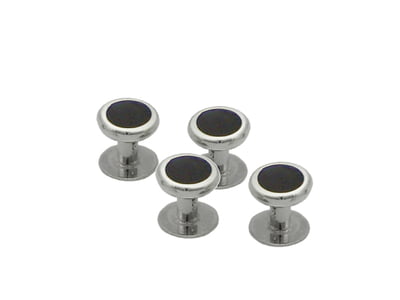 Dress Shirt Set Black Onyx Cufflinks & Studs English Sterling Silver. SKU #: BOX152.